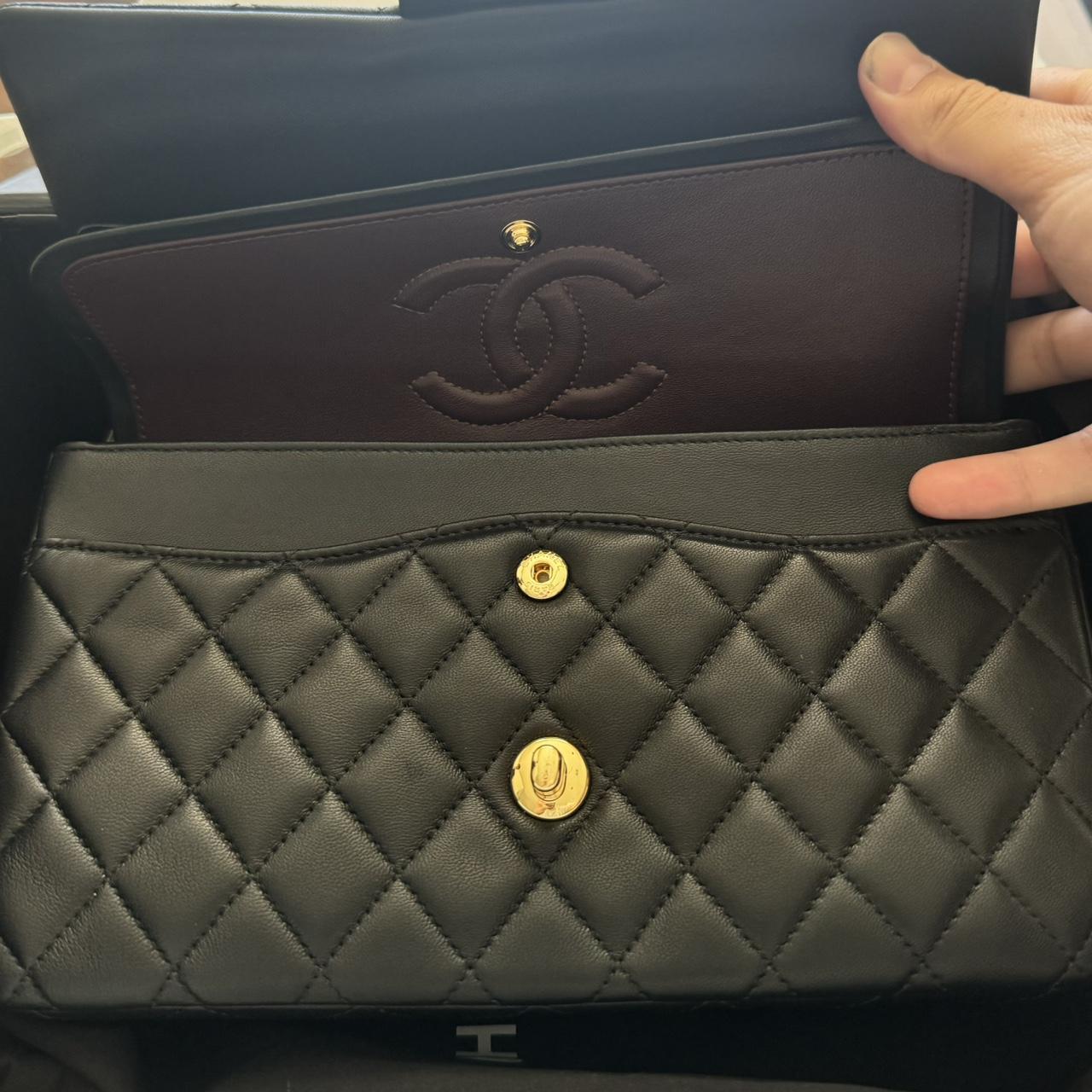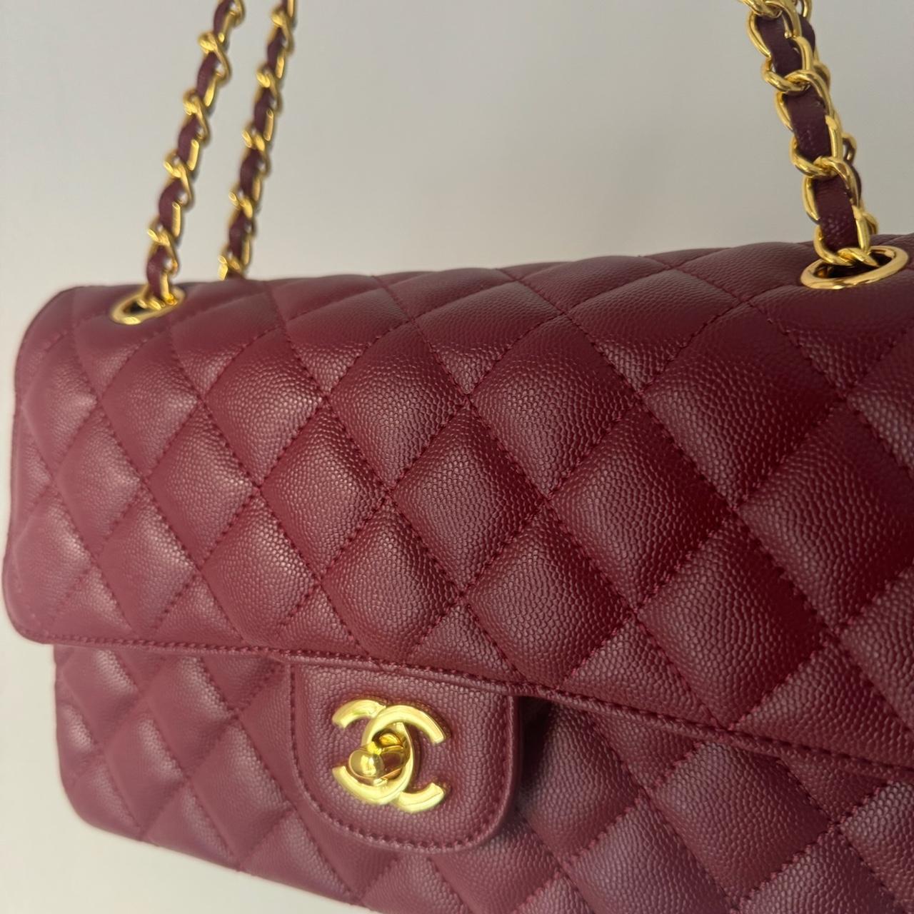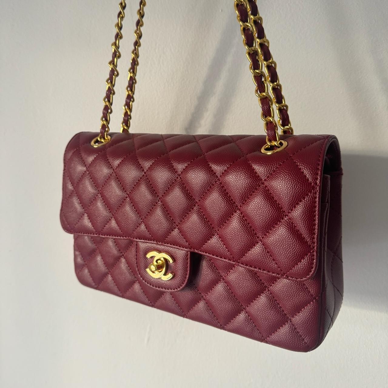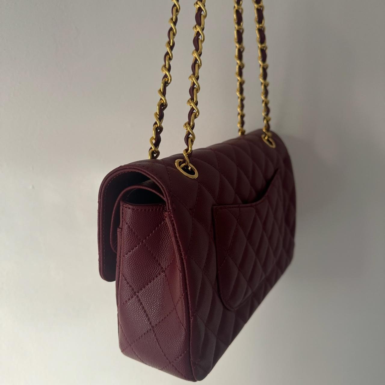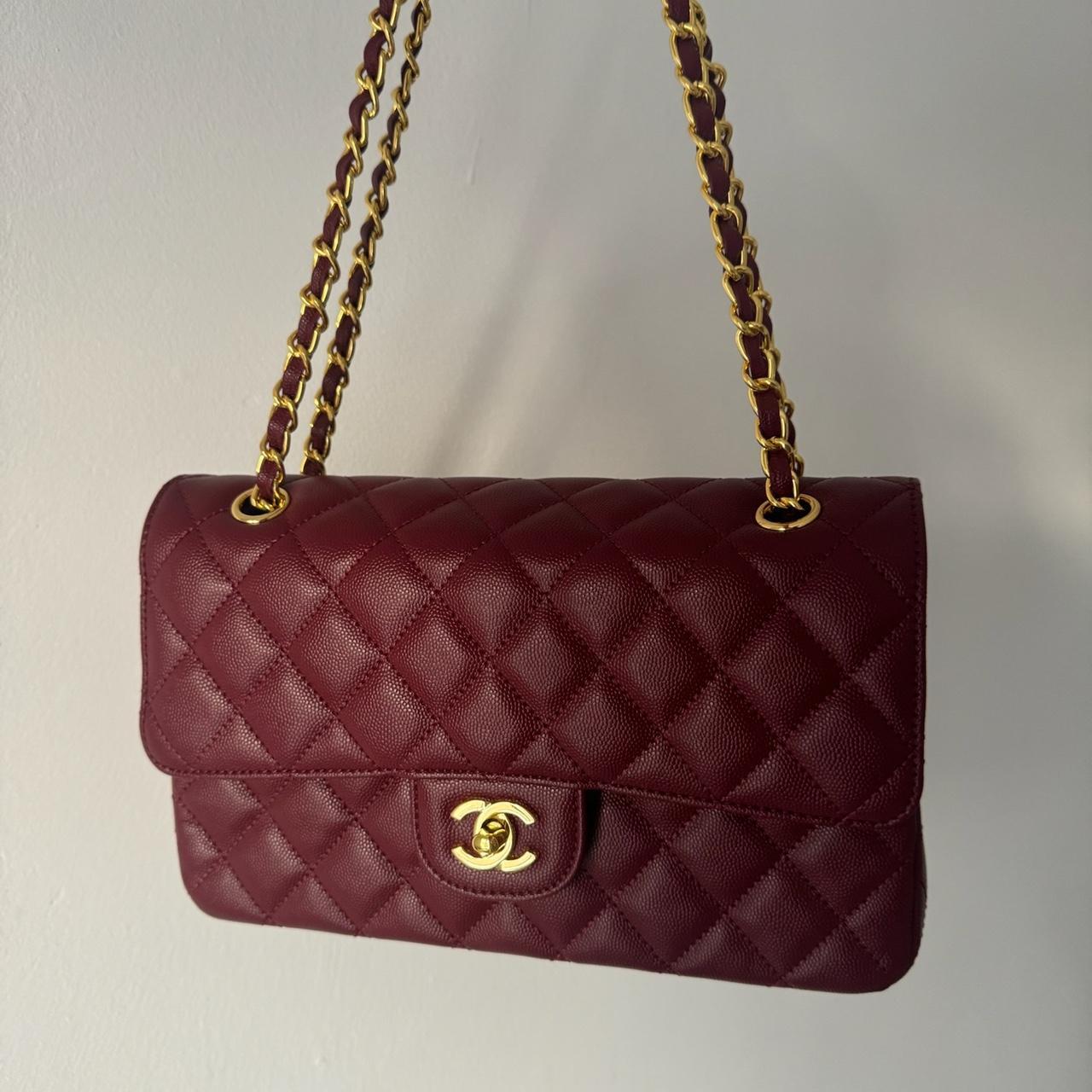 Red/Burgundy and black classic Chanel flap bag ❤️ medium size, okay condition.