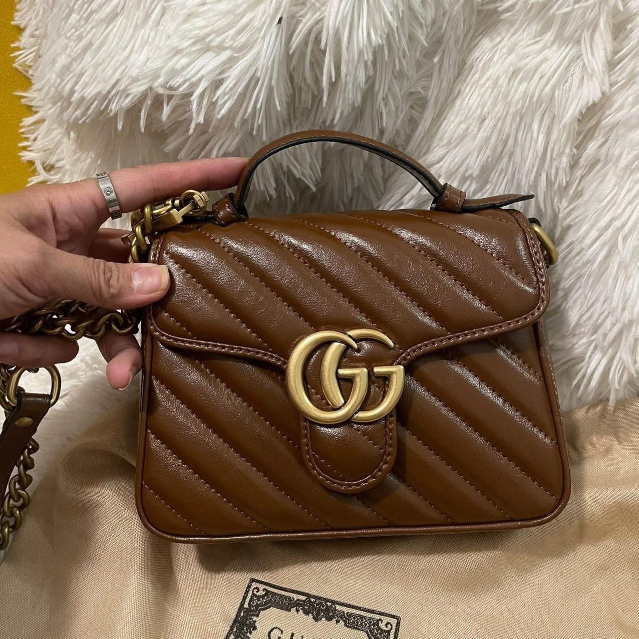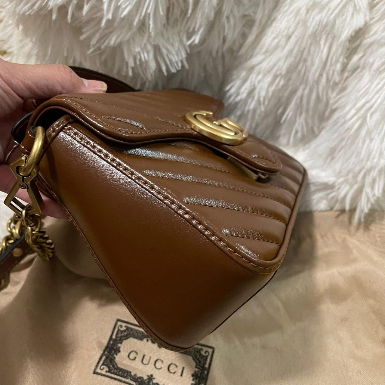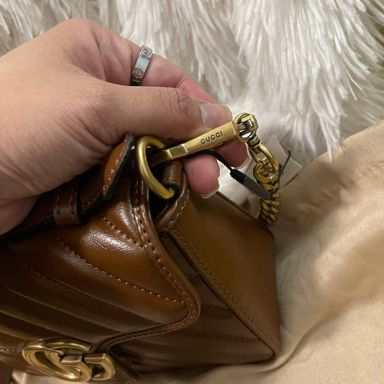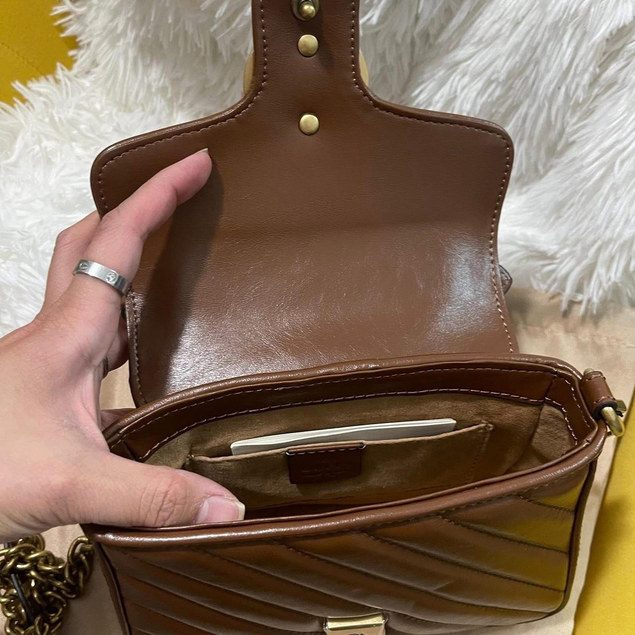 GG Marmont Mini leather crossbody bag in brown #GGMARMONG #CrossbodyBag long crossbody strap for taller people too!